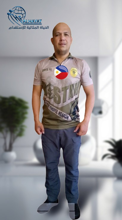 الوظيفة : سائق الراتب الشهري : 2100 ريالالبيانات الخاصة للعاملالجنسية : الفلبينرقم الجواز : P9343101Aمدة العقد : 2تاريخ الاصدار : 2018-10-29الراتب الشهري : 2100 ريالمكان الاصدار : DFA MANILAالوظيفة : سائقتاريخ الانتهاء : 2028-10-28تاريخ الميلاد : 1984-02-03الديانة : مسيحيالعمر : 40مكان الميلاد : CANDIJAY BOHOLسبق له العملعدد سنوات الخبرة : 2بلد العمل : السعوديةالحالة الاجتماعية : أعزبجليس اطفالالوزن : 74 كيلو جرامكي الملابسالطول : 153 سمغسيللون البشرة : ابيض مائل لسمرهتنظيفالدرجة العلمية : جامعيطبخاجادة اللغة العربية : وسطالدروس الخصوصيةشهادة تمريض معتمدةرخصة تمريض معتمدهتمريض منزليرخصة قيادة محليةرخصة قيادة دولية -
